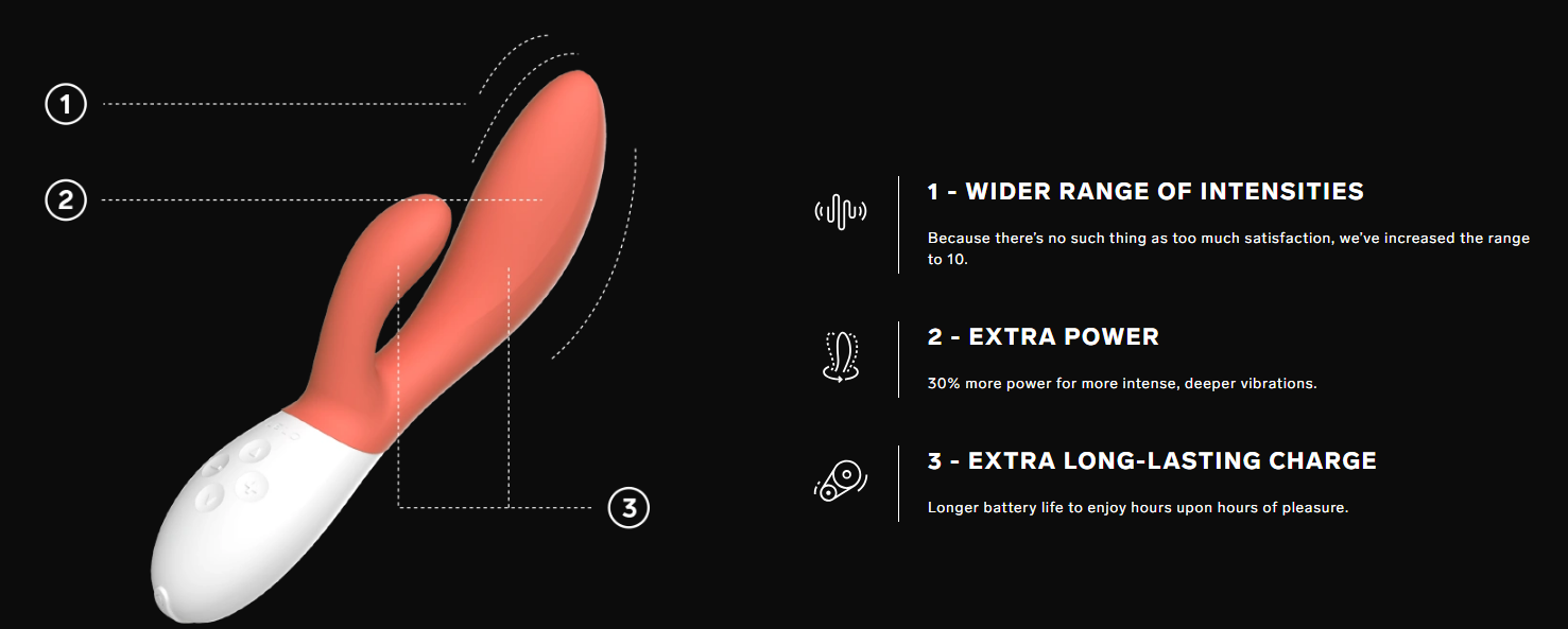 Preskúmajte svoje telo s krásnym INA™ 3 dvojitým masážnym prístrojom, ktorý má o 30 % viac výkonu, širší rozsah intenzít a ohromujúcich desať vibračných nastavení. Intímne sa spojte so sebou a svojím telom a sledujte, ako objavujete novú, hlbšiu rovnováhu.
