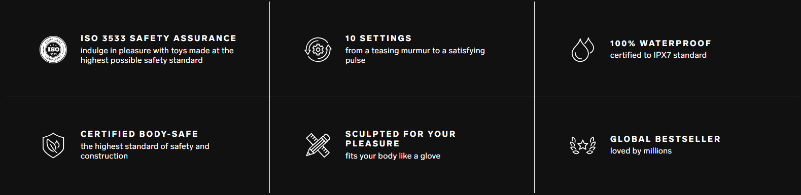 Navrhnuté na dosiahnutie dvojitého orgazmu G-bodu a klitorisu—konečný cieľ všetkých sexuálnych snáh. Po zažití tohto, akákoľvek rozkoš pod touto úrovňou sa zdá byť neúplná. Preto, vybavené technológiou Cruise Control™, zabezpečuje konzistentnú intenzitu aj pri silnom tlaku, poskytujúc mocné a hlboké uvoľnenie. Teraz môžete zažiť dvojité orgazmy znova a znova, čím pozdvihnete svoj sexuálny zážitok na úplne novú úroveň.