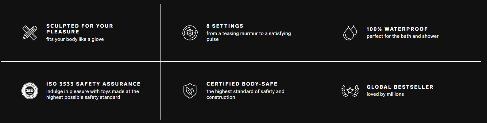 Navrhnuté na dosiahnutie dvojitého orgazmu G-bodu a klitorisu—konečný cieľ všetkých sexuálnych snáh. Po zažití tohto, akákoľvek rozkoš pod touto úrovňou sa zdá byť neúplná. Preto, vybavené technológiou Cruise Control™, zabezpečuje konzistentnú intenzitu aj pri silnom tlaku, poskytujúc mocné a hlboké uvoľnenie. Teraz môžete zažiť dvojité orgazmy znova a znova, čím pozdvihnete svoj sexuálny zážitok na úplne novú úroveň.
