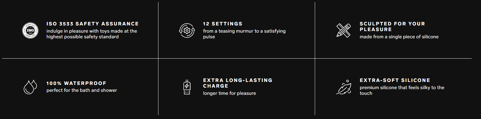 Navrhnuté na dosiahnutie dvojitého orgazmu G-bodu a klitorisu—konečný cieľ všetkých sexuálnych snáh. Po zažití tohto, akákoľvek rozkoš pod touto úrovňou sa zdá byť neúplná. Preto, vybavené technológiou Cruise Control™, zabezpečuje konzistentnú intenzitu aj pri silnom tlaku, poskytujúc mocné a hlboké uvoľnenie. Teraz môžete zažiť dvojité orgazmy znova a znova, čím pozdvihnete svoj sexuálny zážitok na úplne novú úroveň.